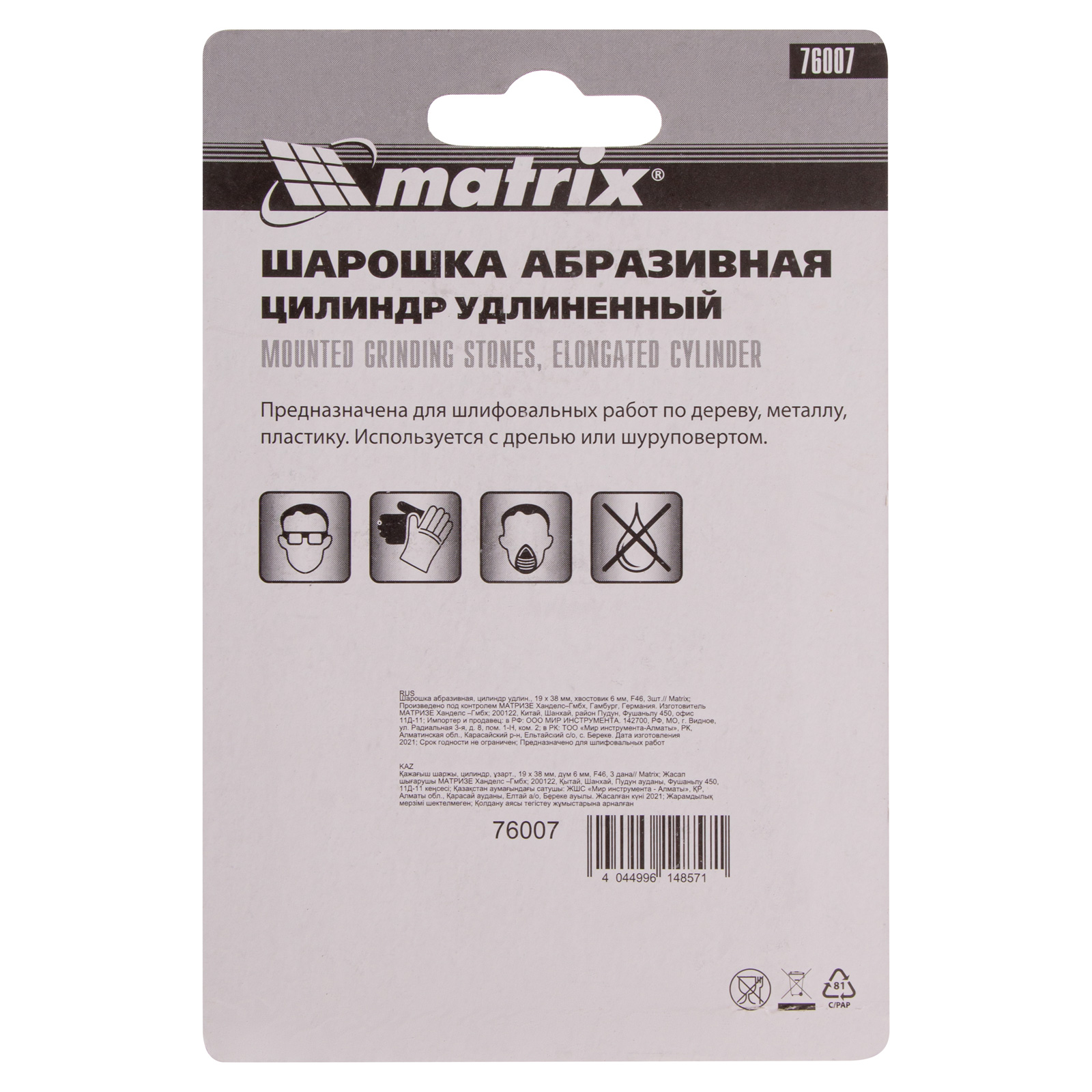 Шарошка абразивная, цилиндр удлин., 19x38x6, F46, 3шт. Matrix