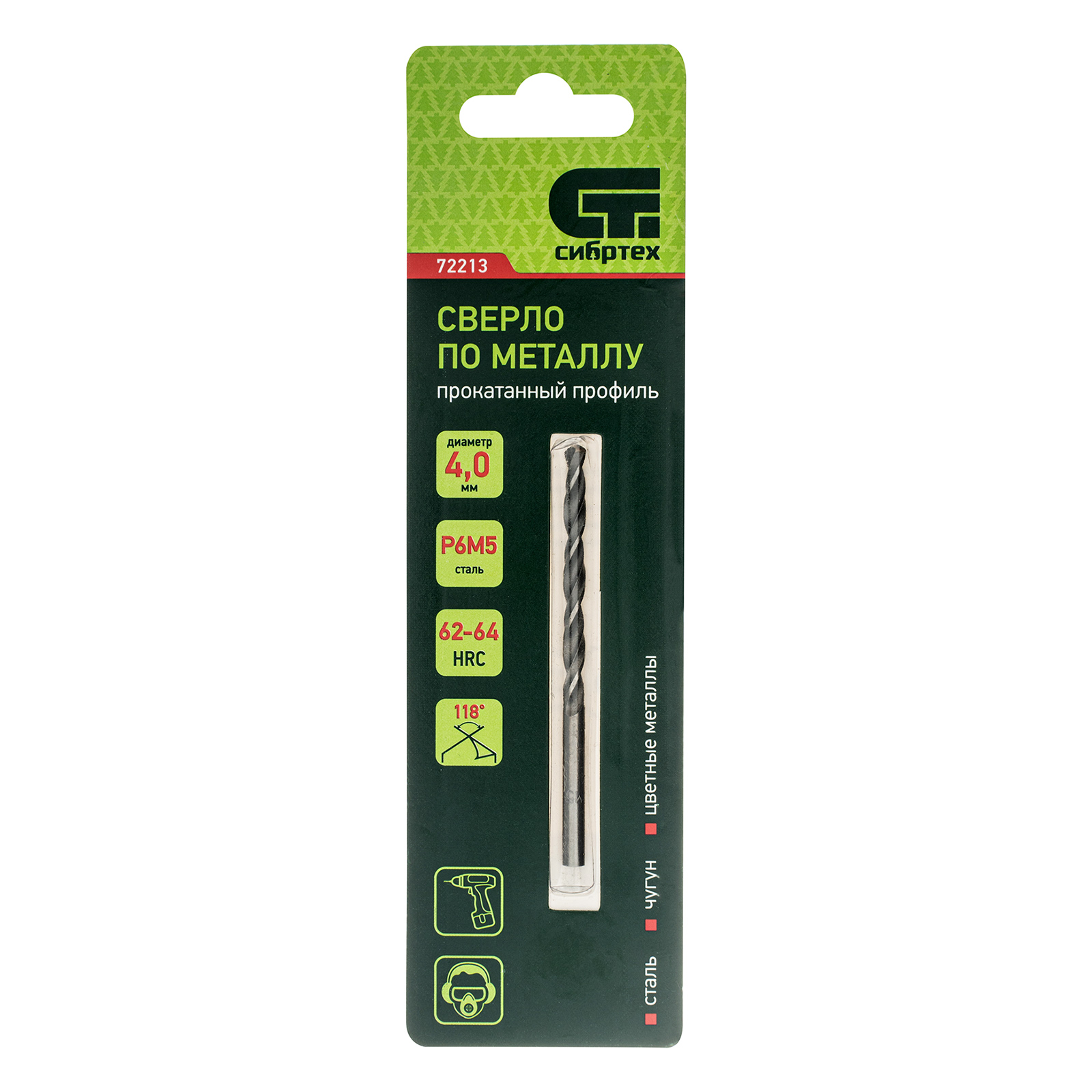 Сверло по металлу, 4,0 мм, Р6М5 Сибртех