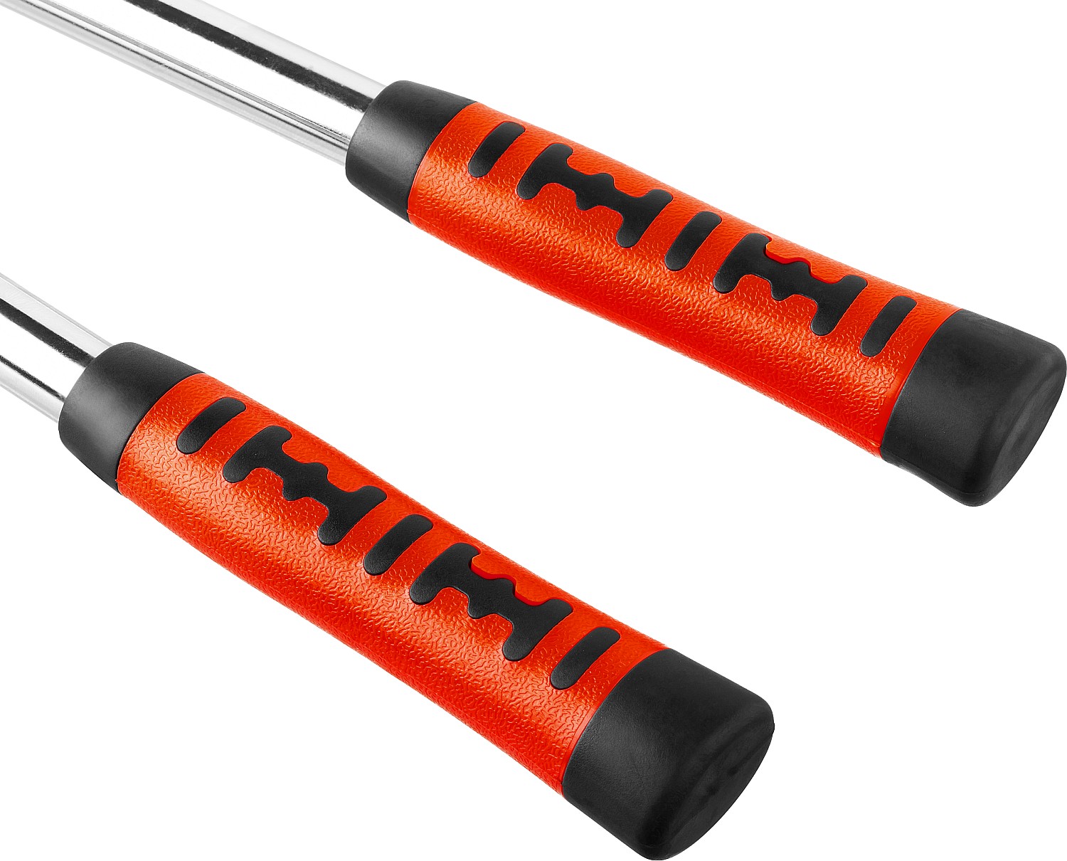 Заклепочник MIRAX благодаря двухрычажной конструкции механизма многократно увеличивает прилагаемое усилие, что позволяет снизить утомляемость при длительной работе.