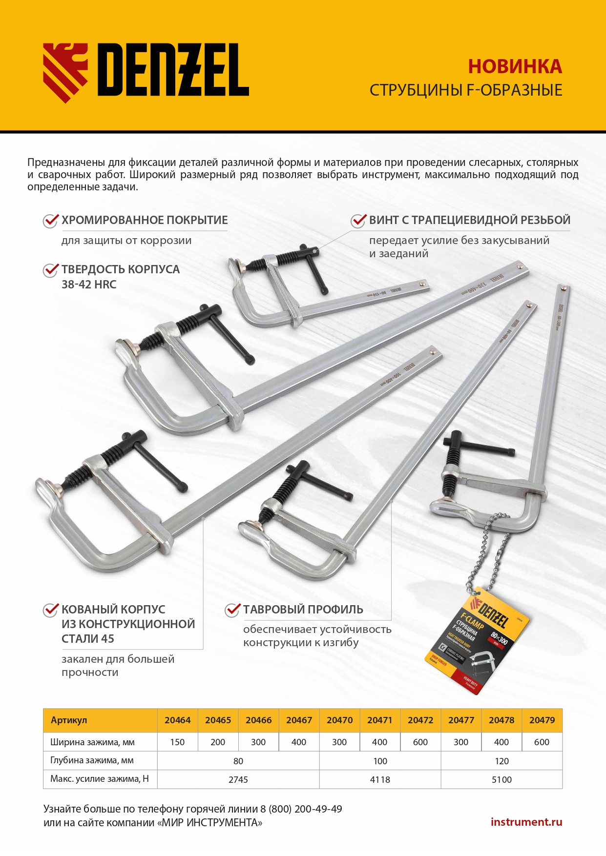 Струбцина F-образная, 80x200мм, кованая // Denzel