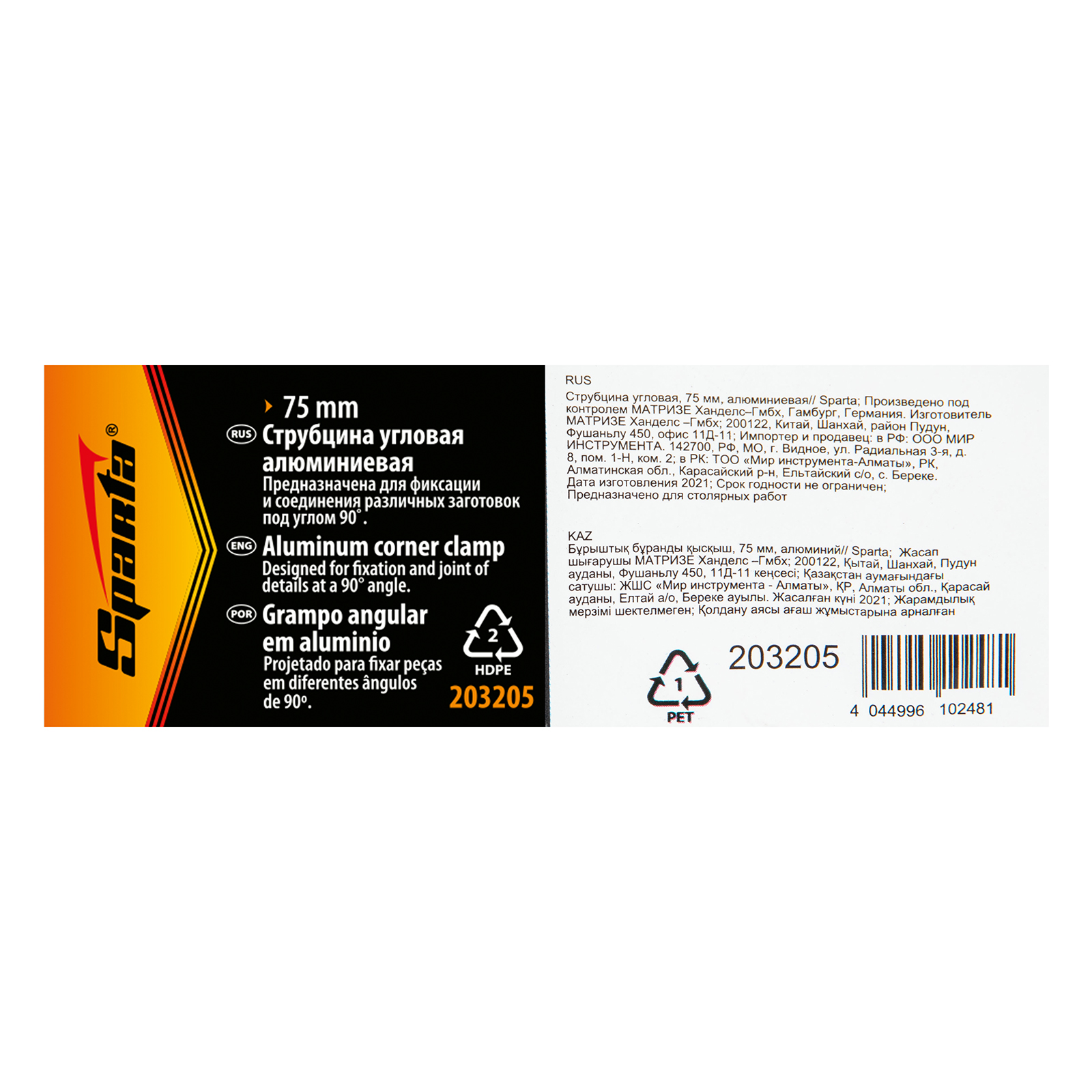 Струбцина угловая, 75 мм, алюминиевая Sparta