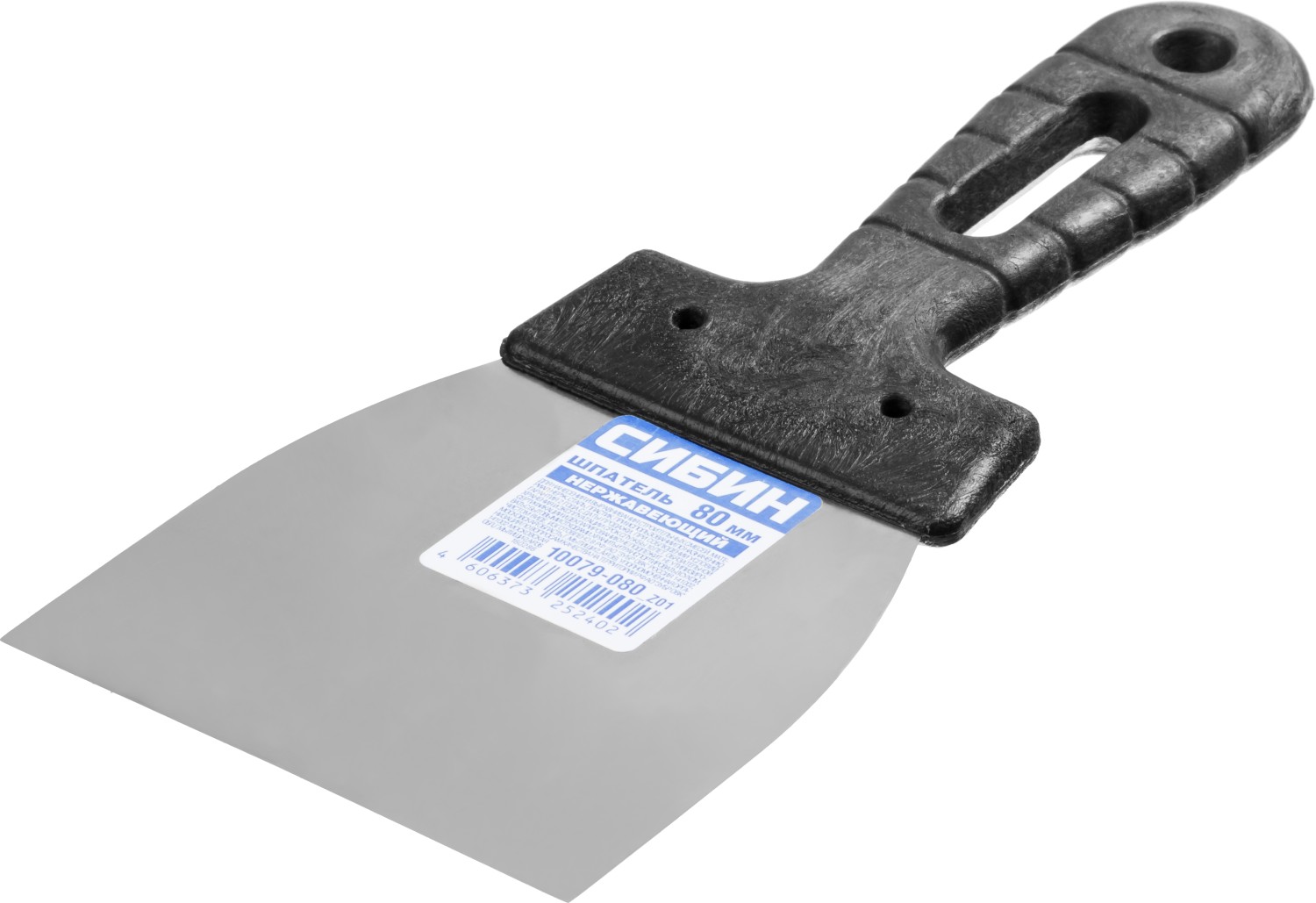 Шпатель СИБИН - отличный выбор для строительства и ремонта! Полотно из нержавеющей стали обеспечивает надежность и долгий срок службы инструмента, а удобная пластмассовая рукоятка создает условия для комфортной работы
