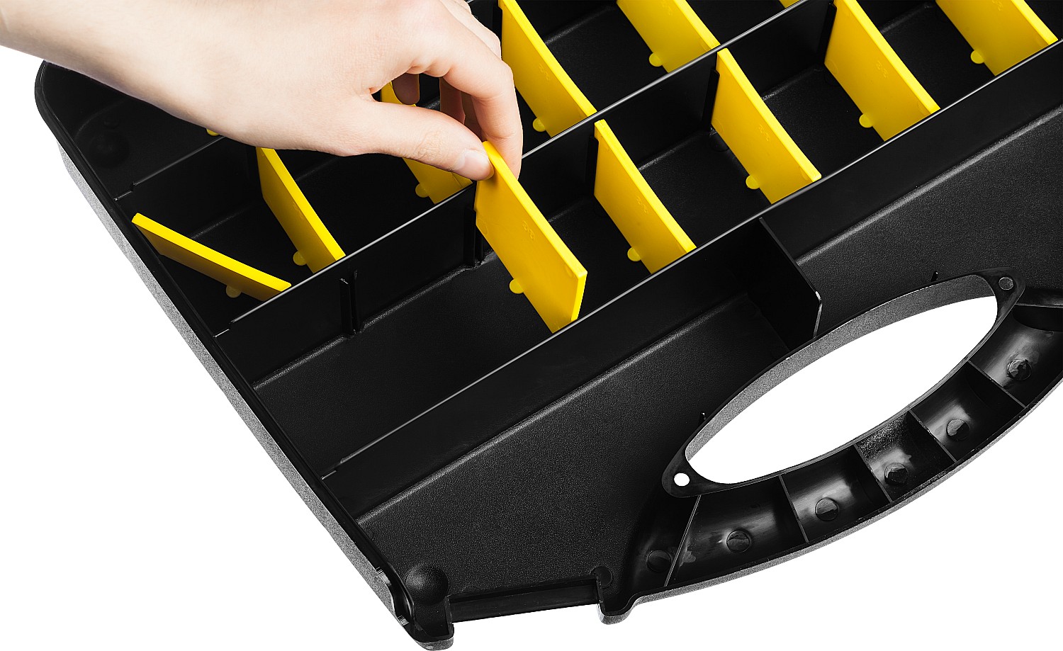 Большое количество ячеек и возможность их регулирования по ширине позволяет организовать удобное хранение инструментов и принадлежностей