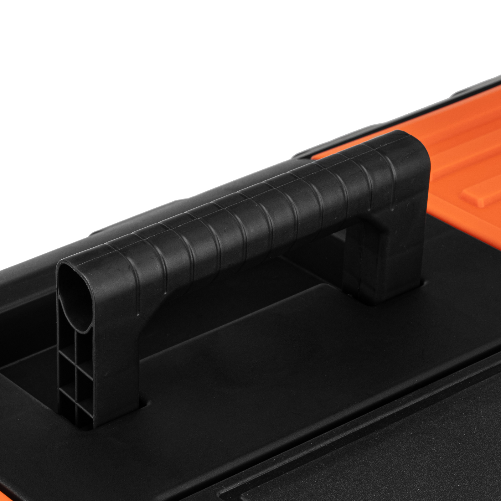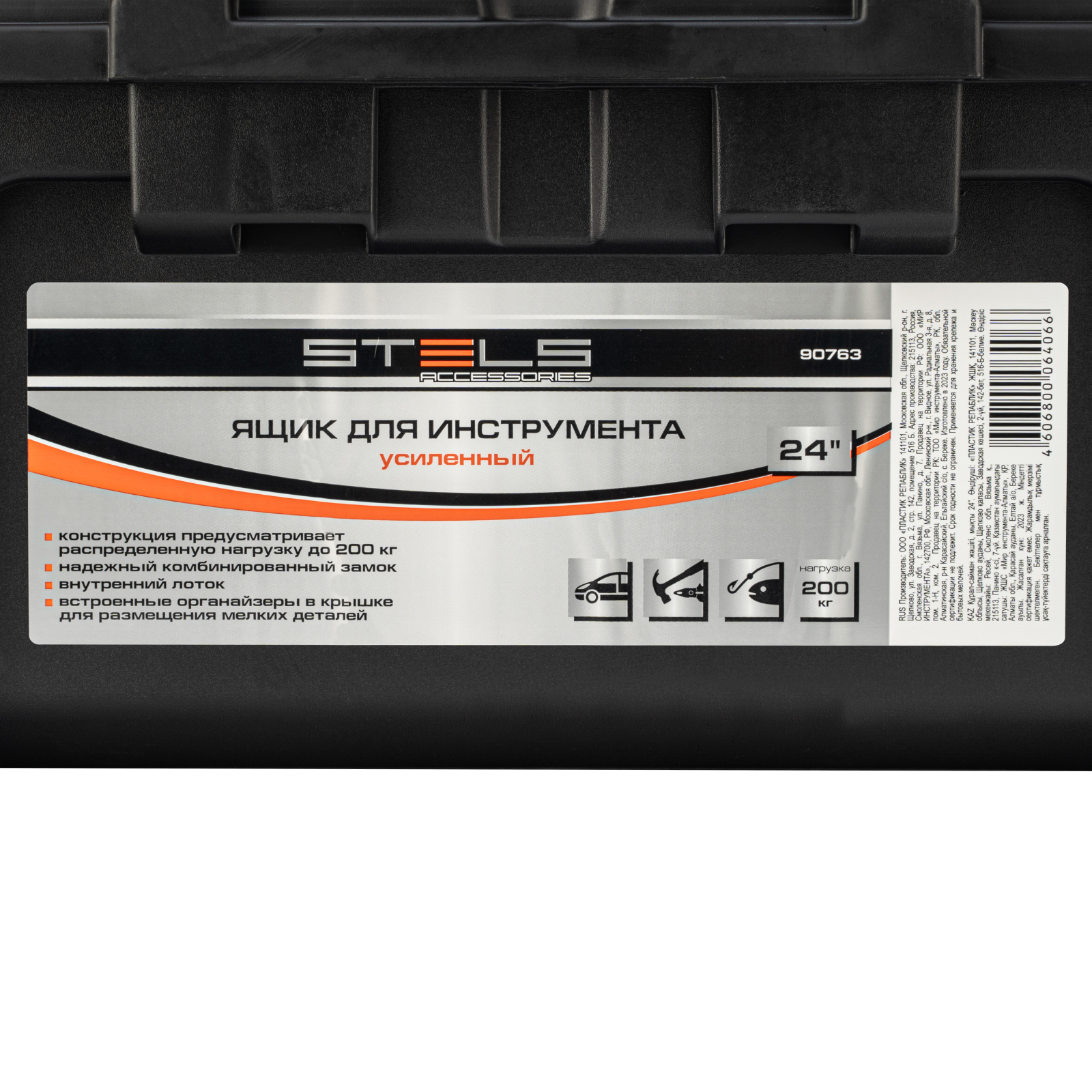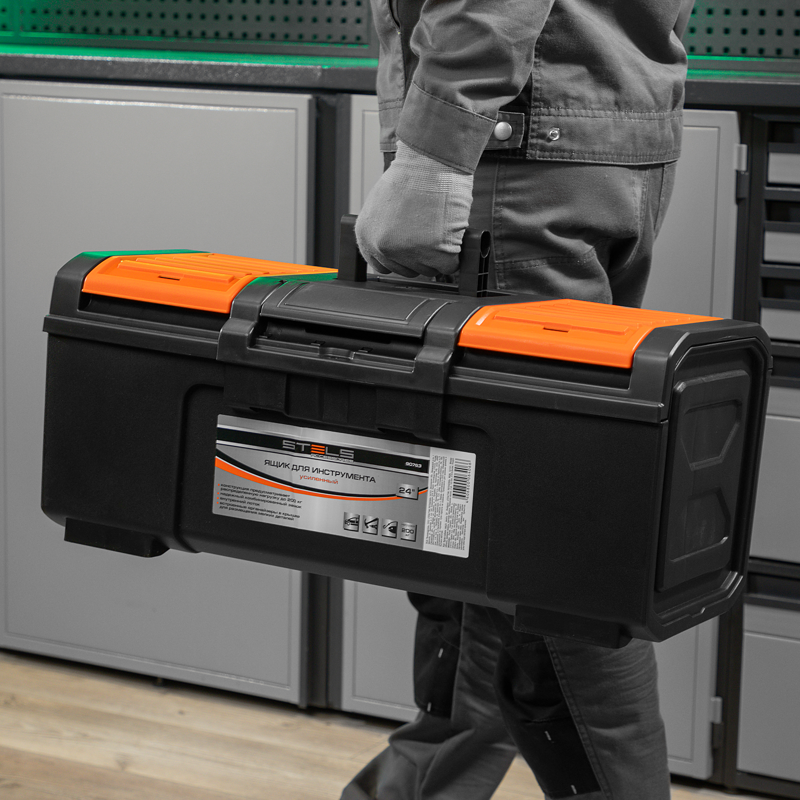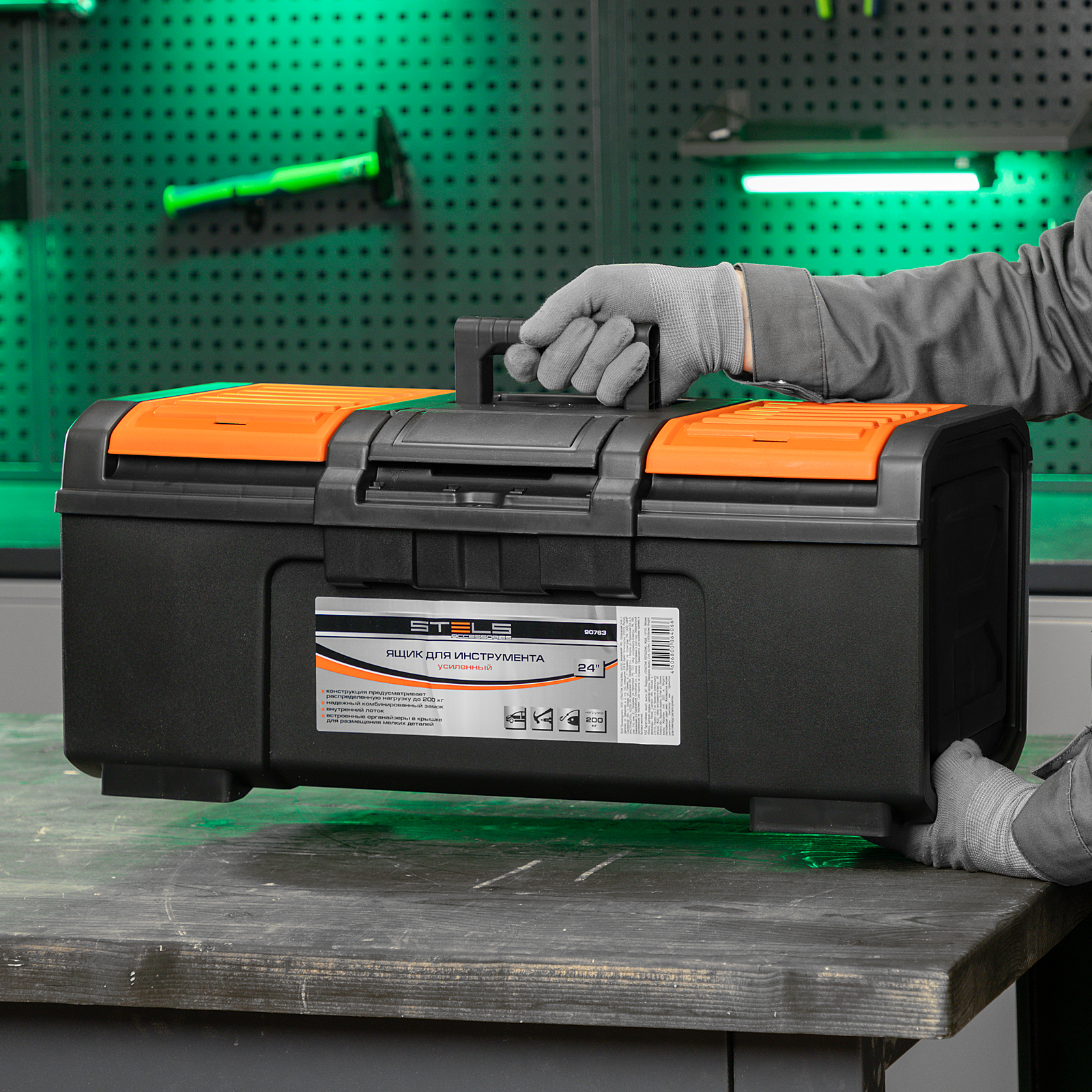 Усиленный ящик для инструментов Stels 90763 длиной 24" используется для хранения и транспортировки ручного и электроинструмента, а также хозяйственных мелочей или рыболовных принадлежностей. Заменяет коробку для инструментов, а также может служить рыболовным ящиком. Пригодится дома, в поездке, а также в гараже или на даче.