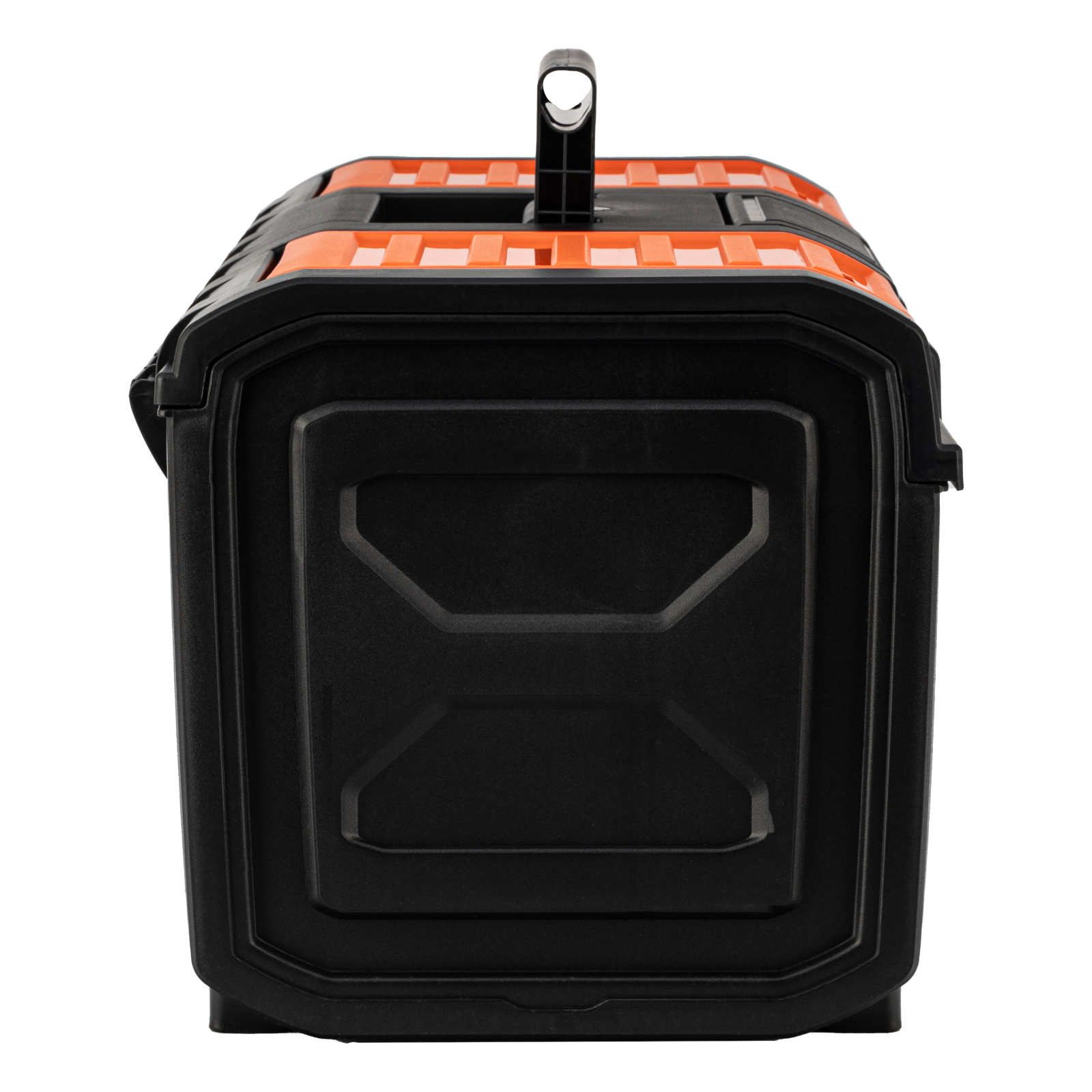 - Комфортное использование — замок легко открывается одной рукой, широкая ручка облегчает перемещение ящика.