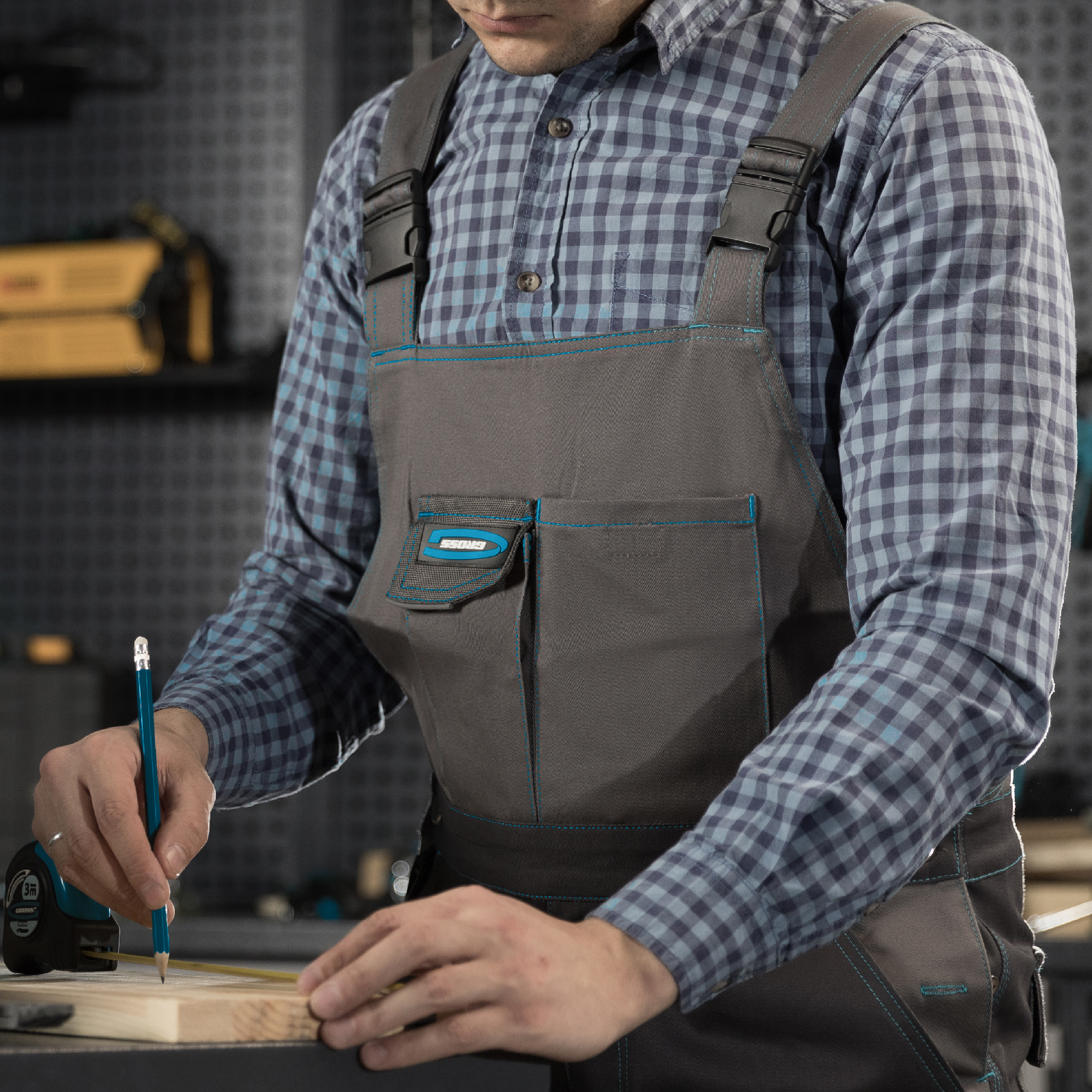 Полукомбинезон Gross 90376 размера XXXL, состоящий на 97% из хлопка и на 3% из спандекса, защищает рабочего от производственных загрязнений и мелких травм. Используется в теплое время года и в отапливаемых помещениях. Высокое содержание хлопка в ткани обеспечивает ей превосходные дышащие свойства, поэтому в полукомбинезоне можно комфортно работать на протяжении всей смены. Присутствующий в составе материала спандекс придает спецодежде эластичность и износостойкость. Спецовка пригодится строителям, ремонтникам, электрикам, сантехникам, работникам АЗС и автосервисов, а также мастерам других специальностей.