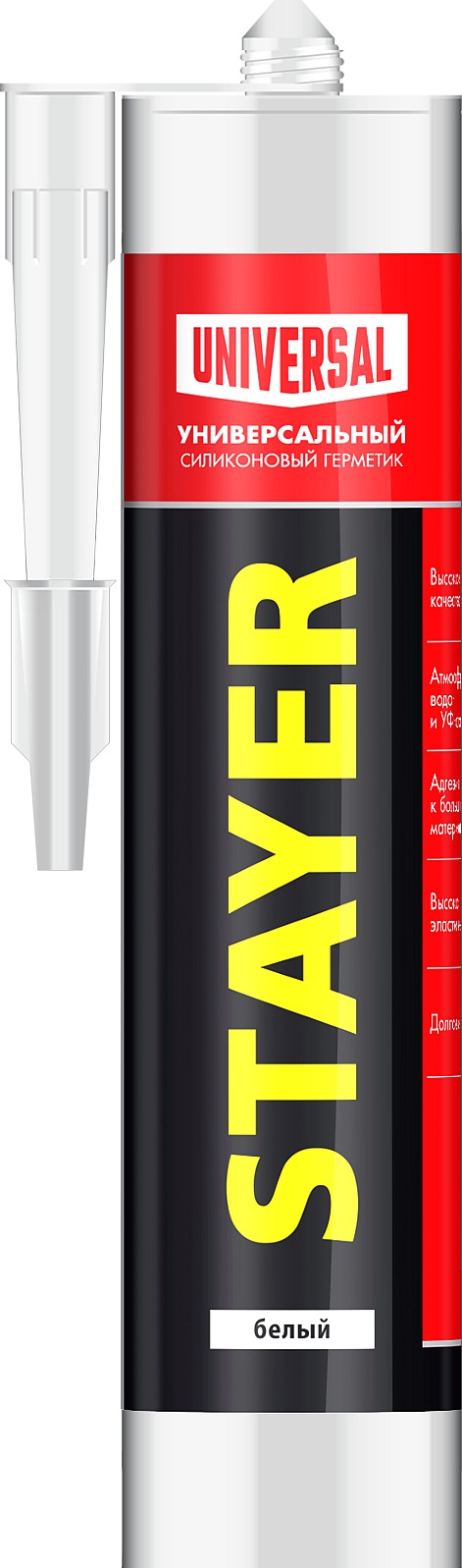 Герметик STAYER "MASTER" универсальный, силиконовый, белый, 260 мл