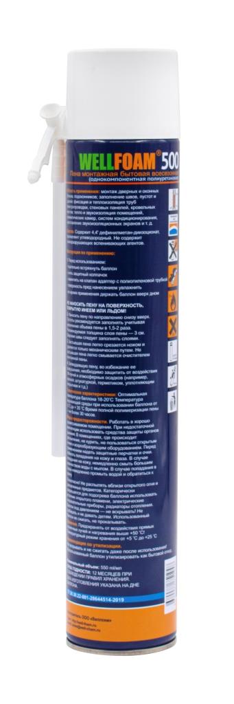 Пена монтажная бытовая WELLFOAM 500, всесезонная, 1000мл